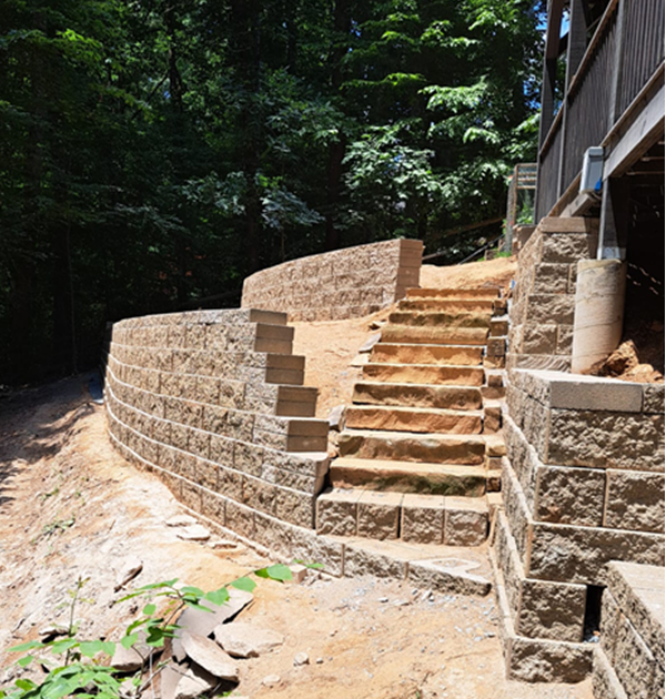 Make it easy to access all the parts of your property by using a retaining wall to add a staircase connecting the upper level of your land with the lower level.