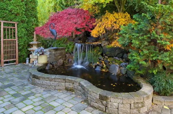 For the ultimate landscape show stopper, use your retaining wall as the backdrop for a descending waterfall or other creative water featur