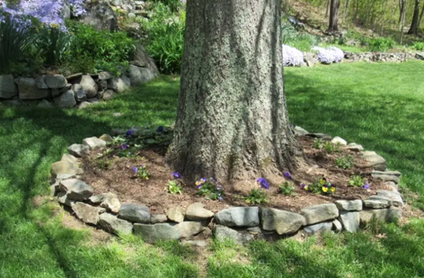 Do you have one or more large, gorgeous trees you want to show off and protect? Build a low wall around the specimen tree